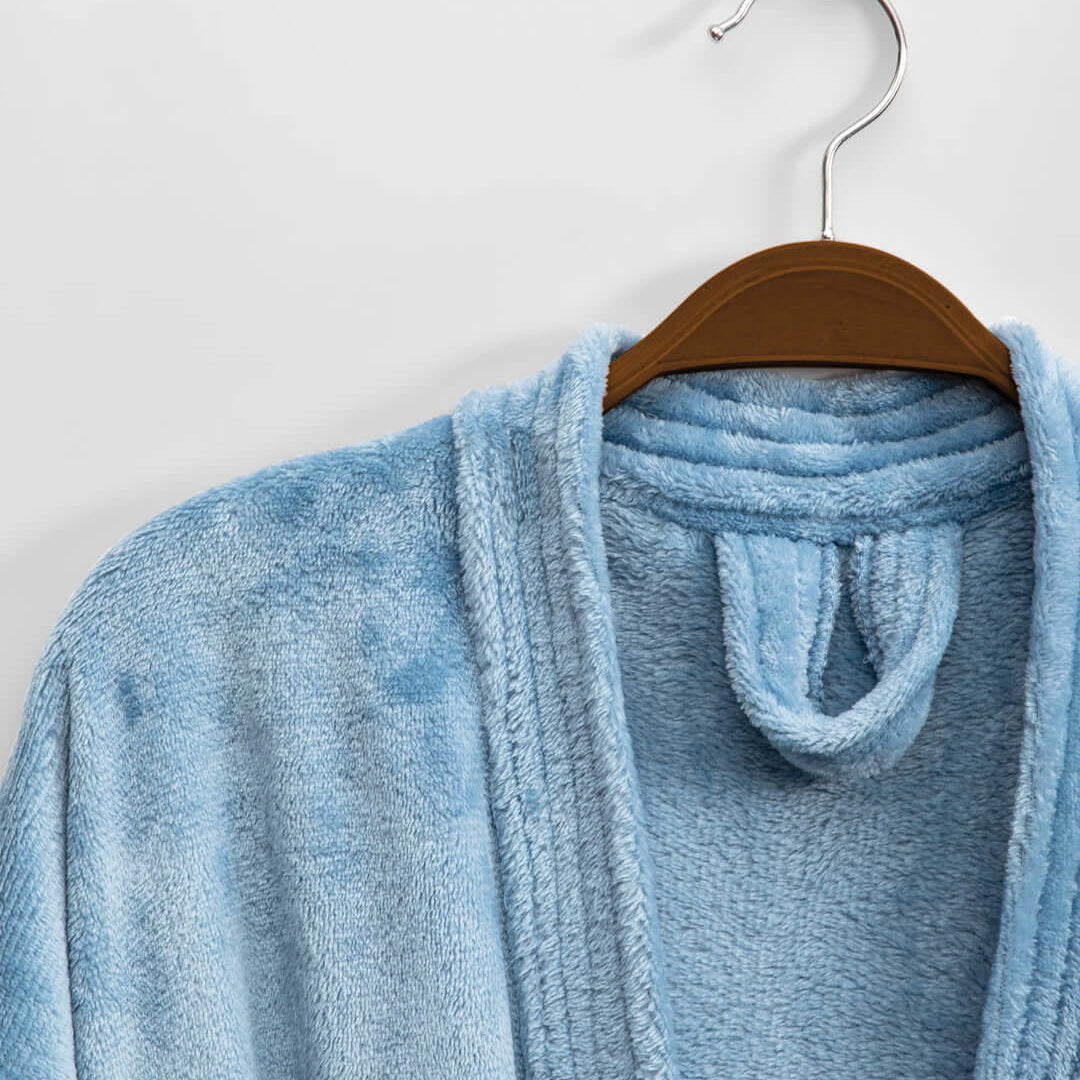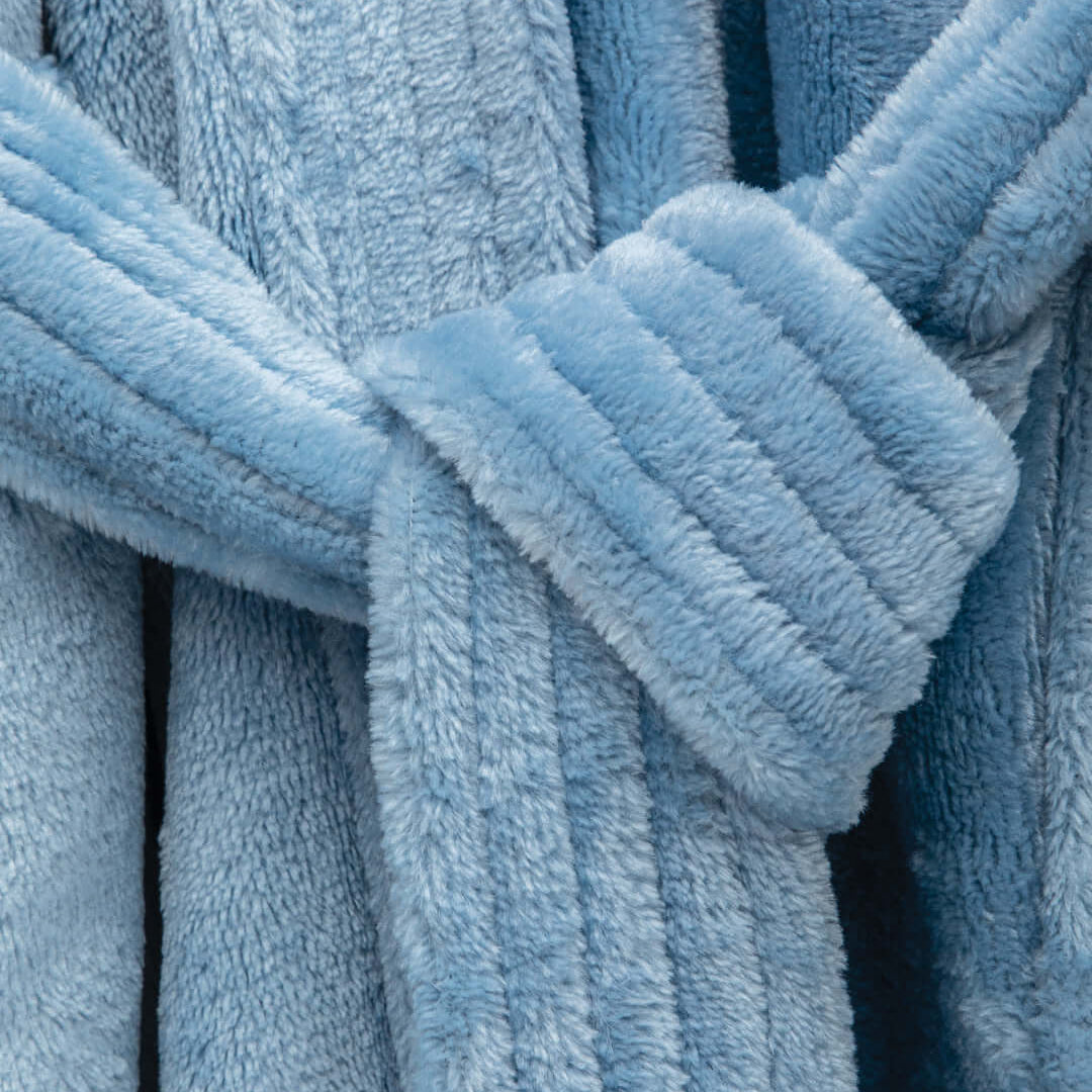 La Bata de descanso Relax Azul es ideal para un dia frio y de descanso en casa, su textura suave y peludita la hace super confortable, tiene bolsillos delanteros y un cordon ajustable.