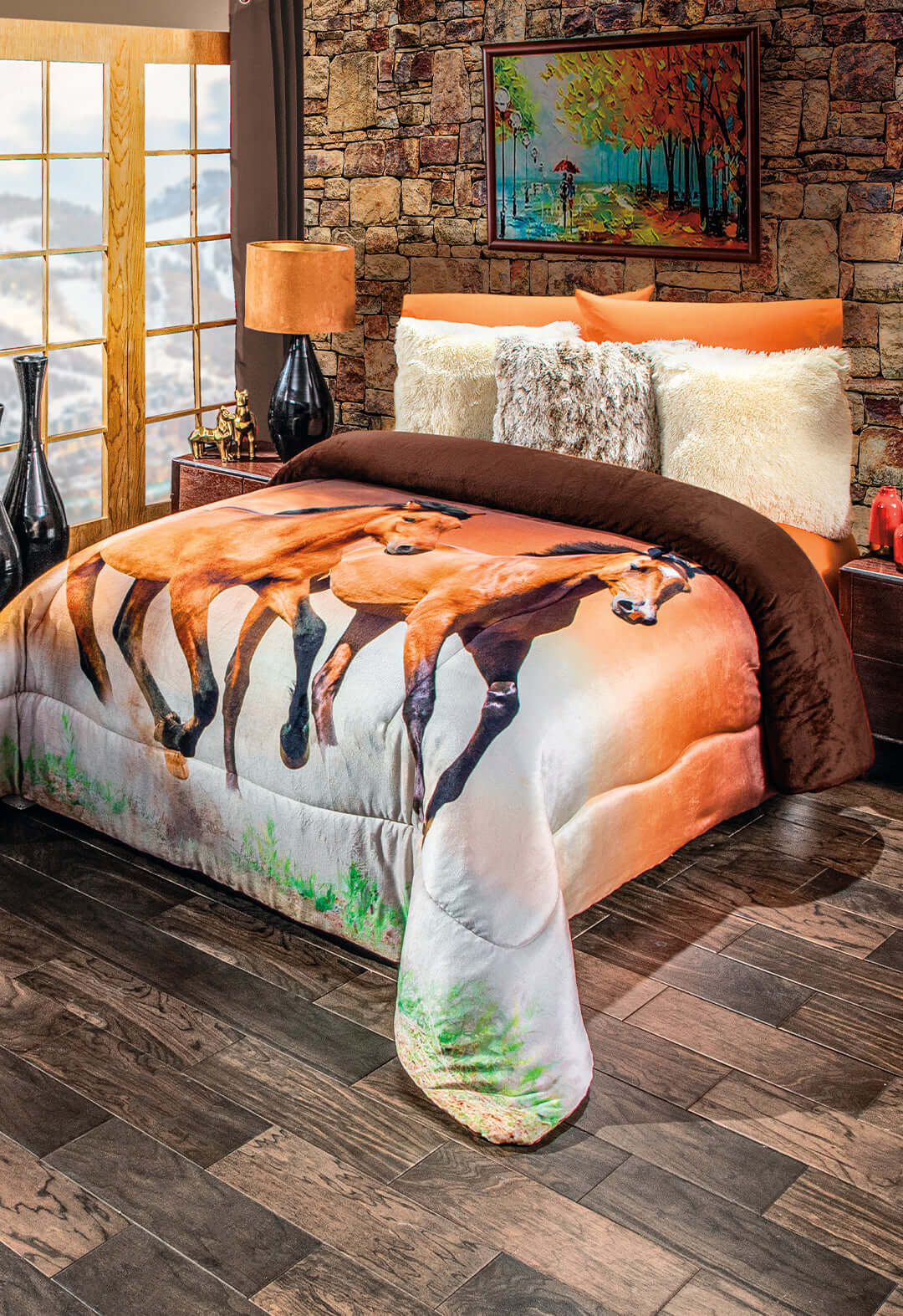 Uno de los diseños mas originales es el cobertor caballos, con su diseño duo en color cafe le dara el contraste perfecto, es super suave y tienes la posibilidad de lavarlo en casa.