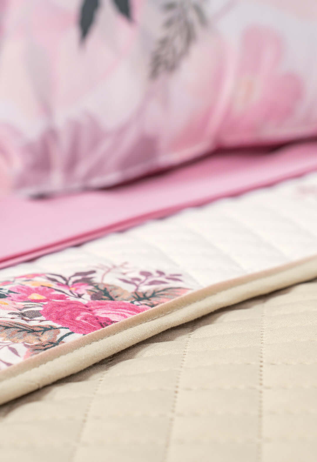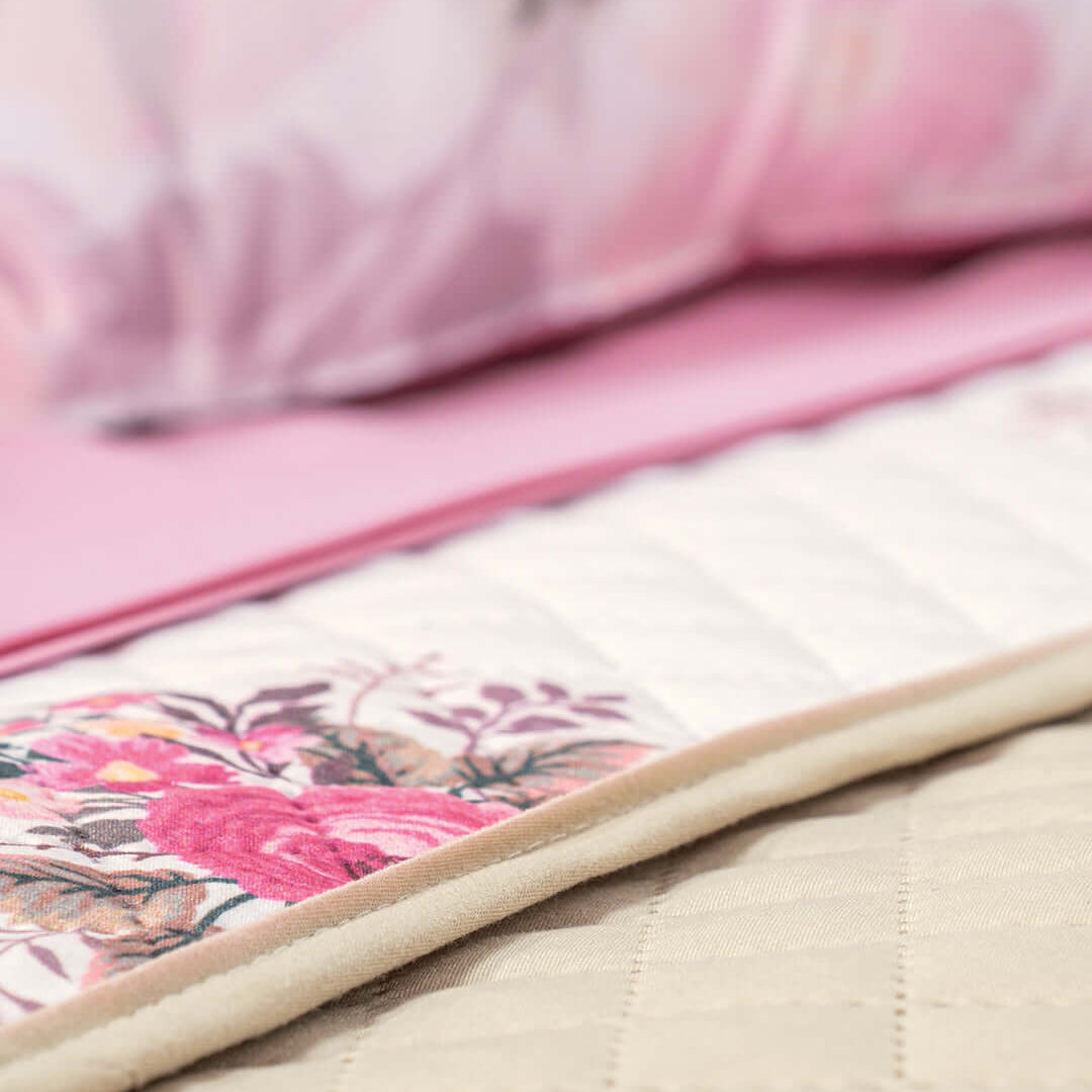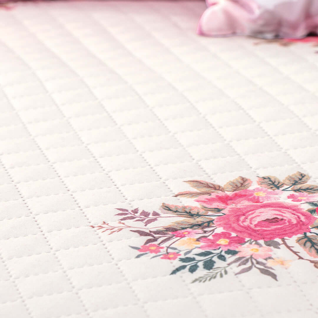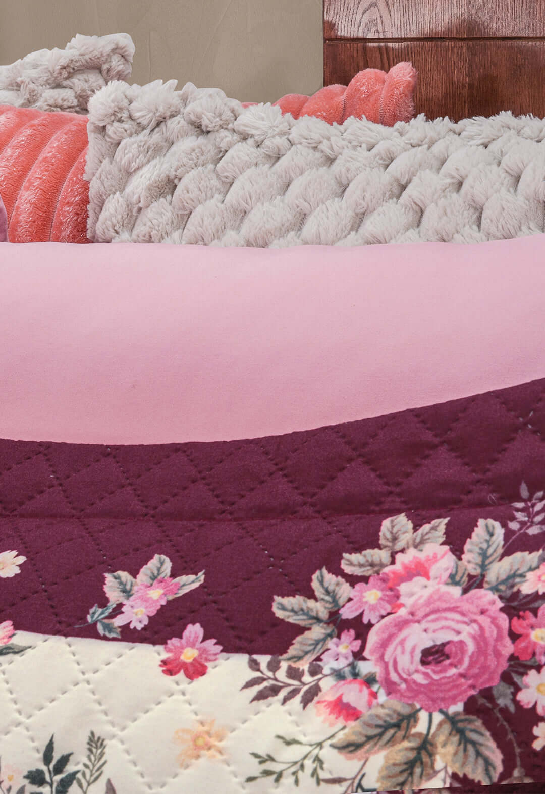 El coordinado de Colcha Yoseline , es un hermoso y completo juego floral en capitonado sin hilos que incluye un juego de sabanas que combina perfecto, y un par de cojines que resaltara su belleza