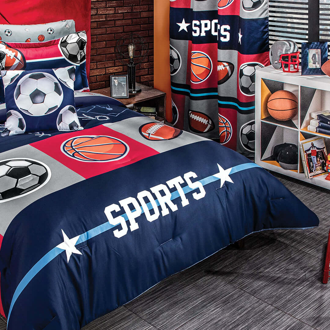 La cortina Deportes es ideal si eres amante de los espacios combinados, tu habitacion lucira alegre y muy original. Consta con un solo panel