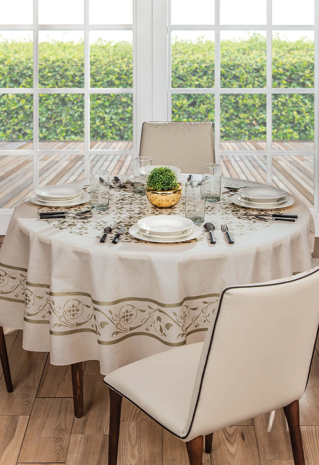 - El mantel Redondo Provenzal esta fabricado con la mejor tela de poliester y ostenta un diseno floral exquisito sobre un fondo beige. Es ideal para dar un toque de elegancia y sobriedad a la mesa, haciendola mas vistosa y acogedora. Medidas: (2.0 m - 78')